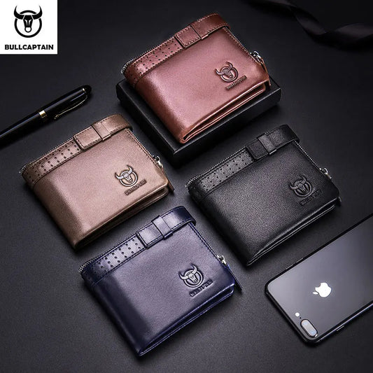 BULLCAPTAIN Leather Men's Short Wallet RFID