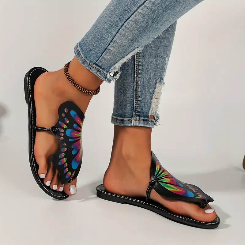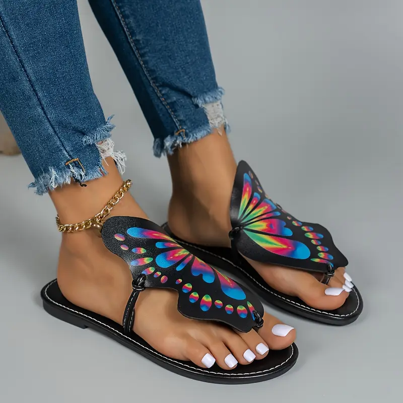 Elevate your summer style with our Womens Butterfly Design Slide Sandals. These casual slip-on shoes feature a unique butterfly pattern and are perfect for any beach or outdoor adventure.