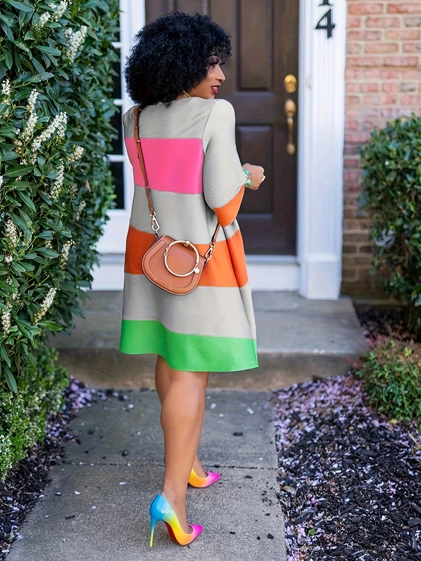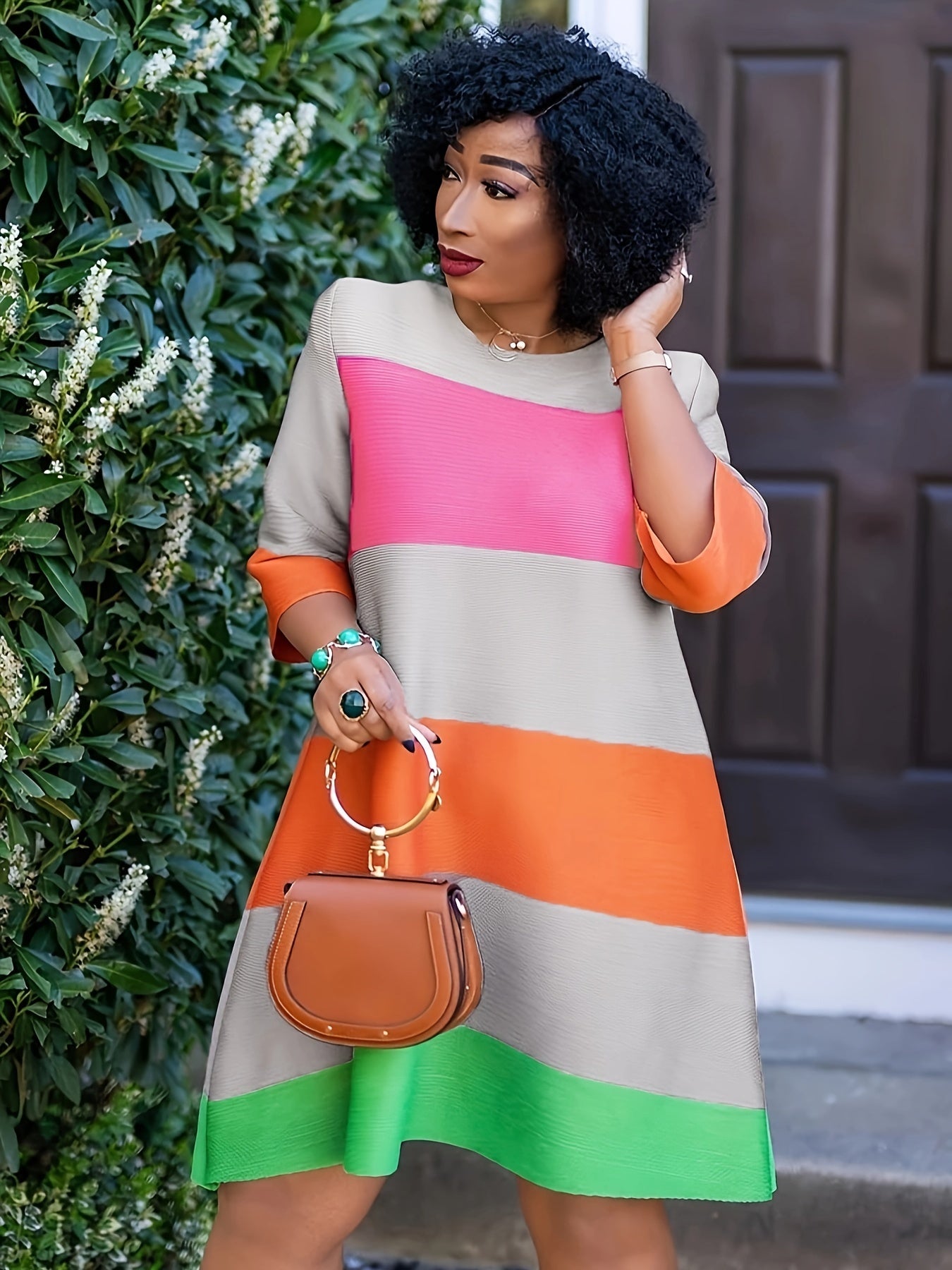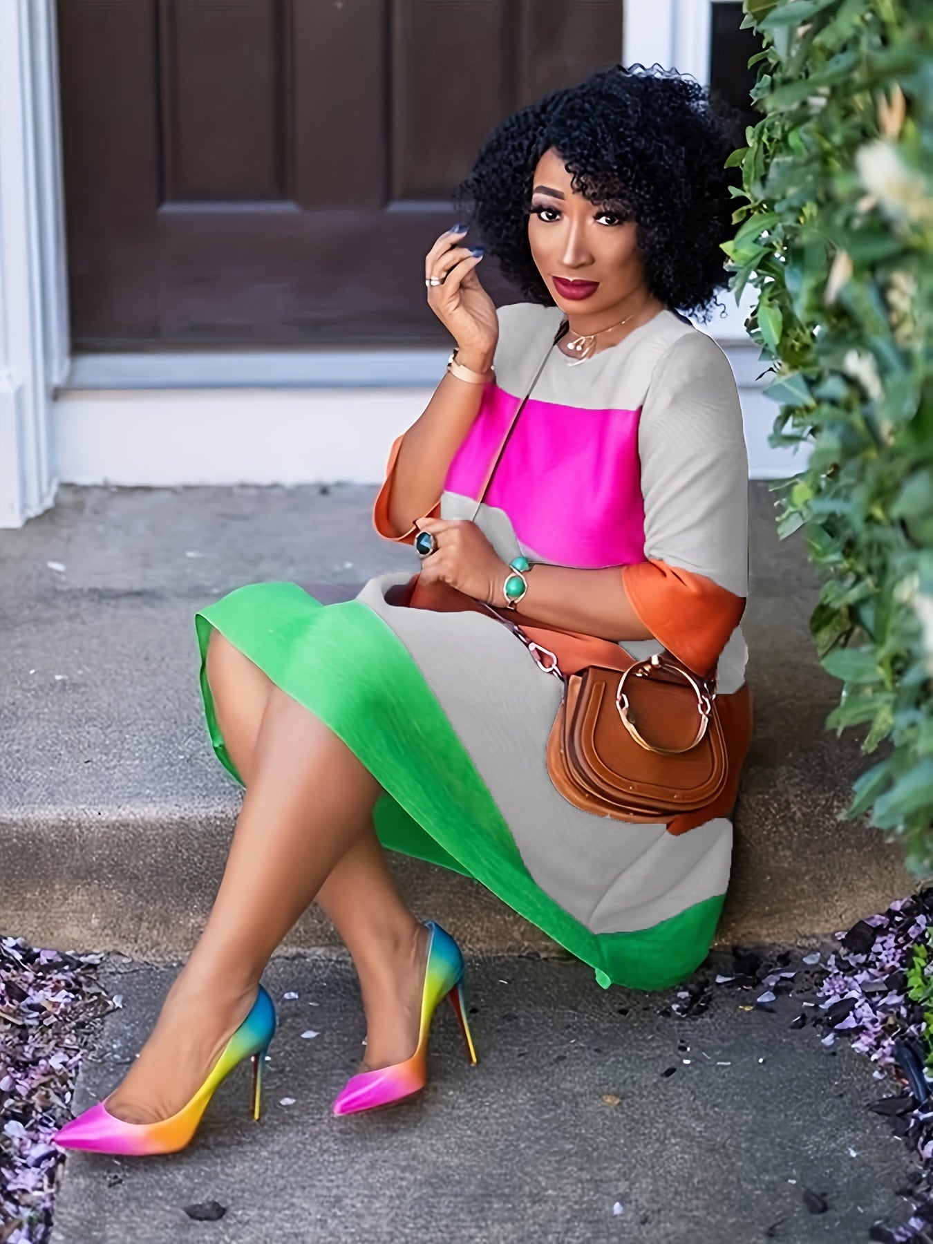 - Details: Perfect for any summer occasion, this dress is a must-have for any fashion-forward woman. Made with high-quality materials and featuring a stylish color block pattern, it is both comfortable and elegant. The three-quarter sleeves and knee-high length make it versatile for any event. Care instructions include machine washing or professional dry cleaning for easy maintenance. Don't miss out on this must-have dress for your wardrobe.