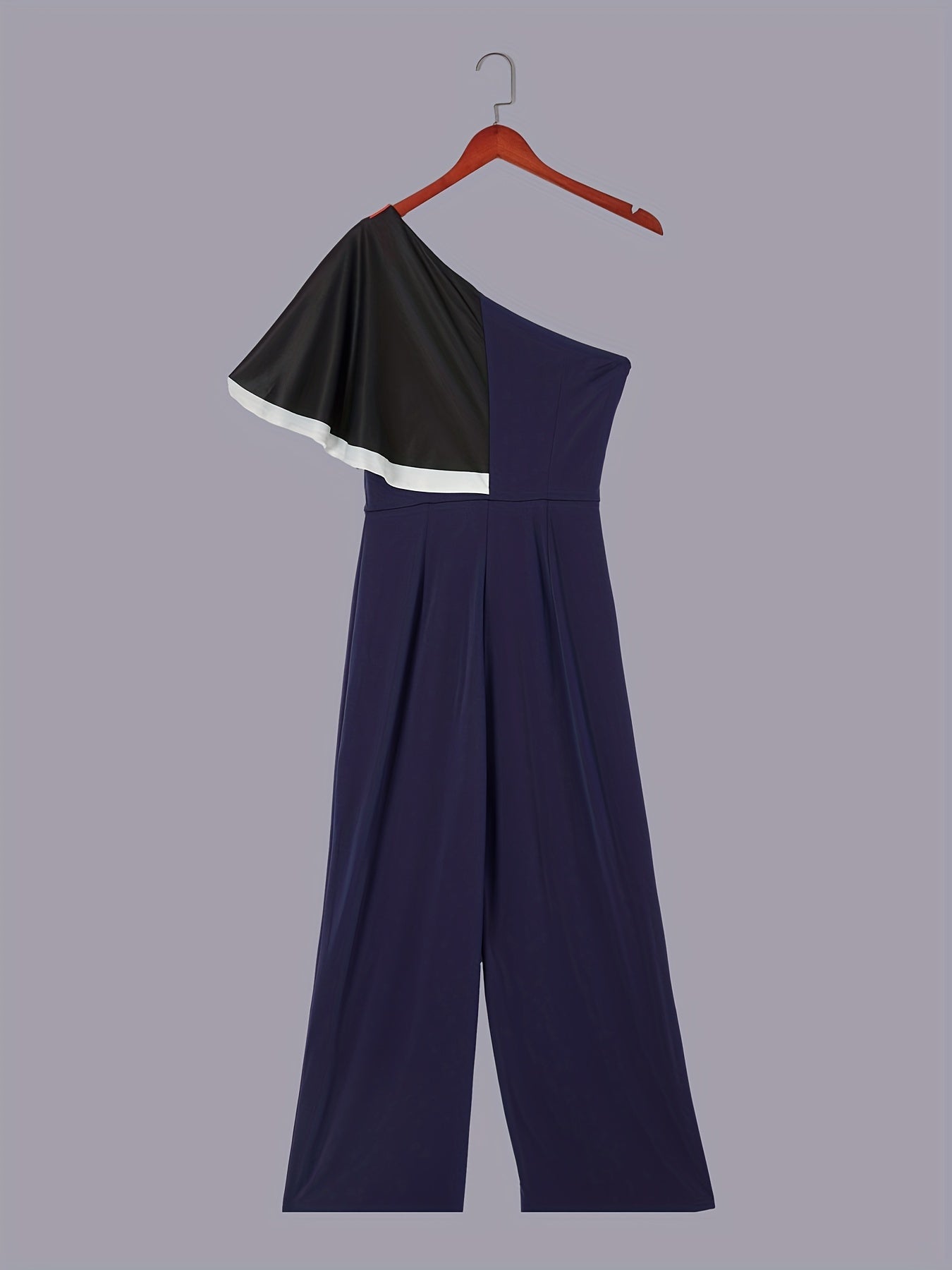 Key selling points: One shoulder design, flutter sleeves, and wide leg silhouette create a flattering and trendy look. The abstract print adds a unique touch to the jumpsuit.