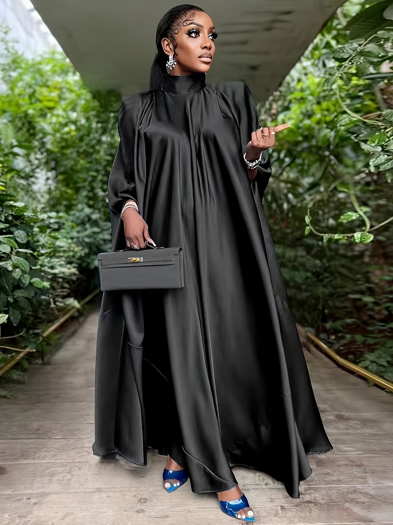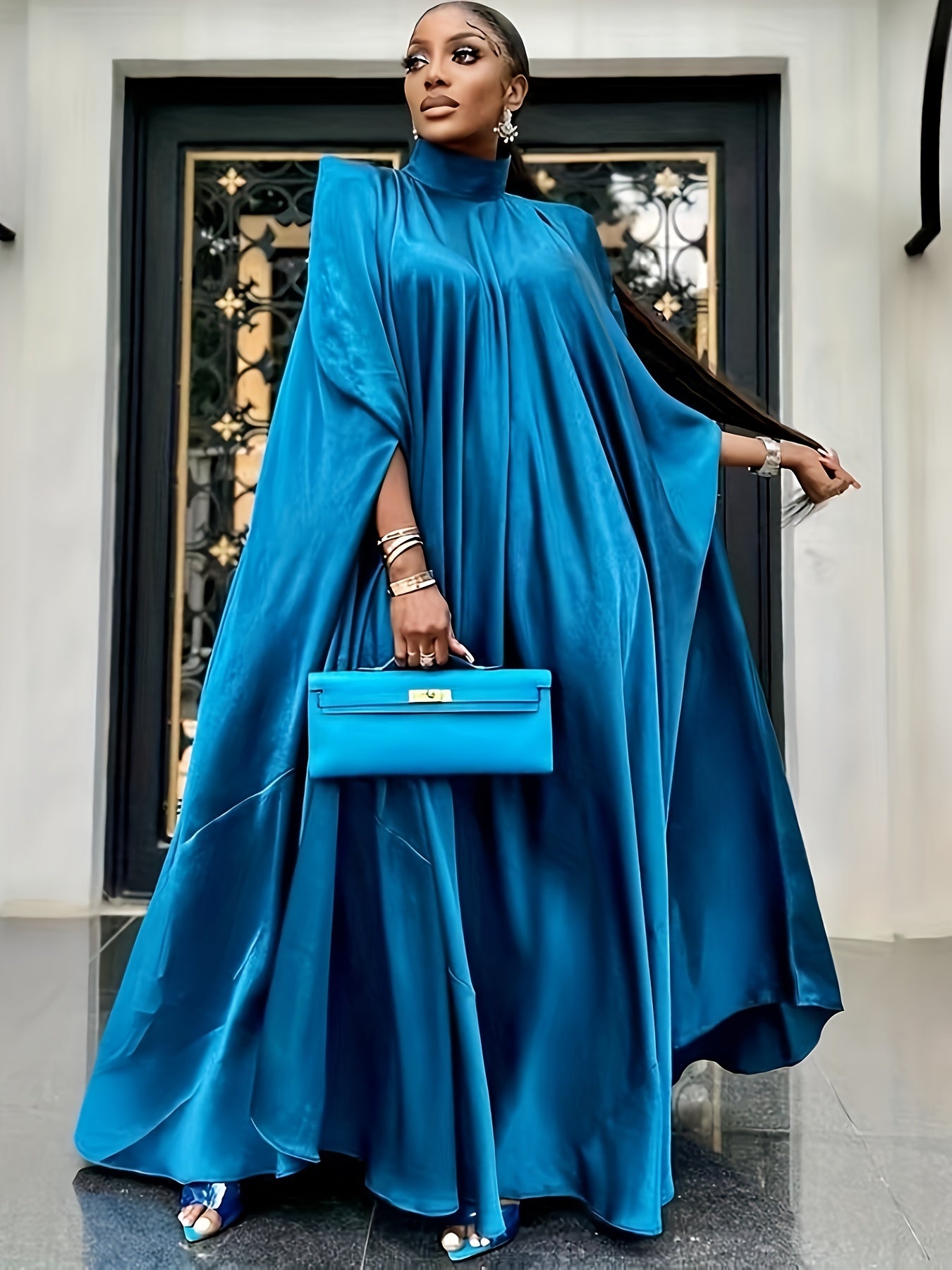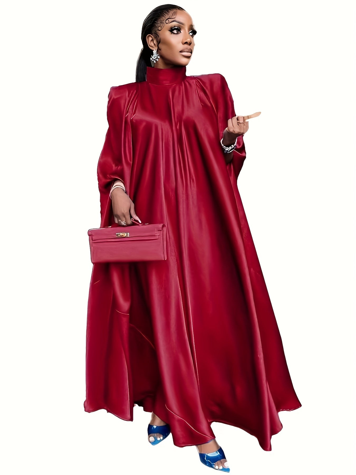 2. Luxurious satin fabric with a mock neck and bat sleeves
