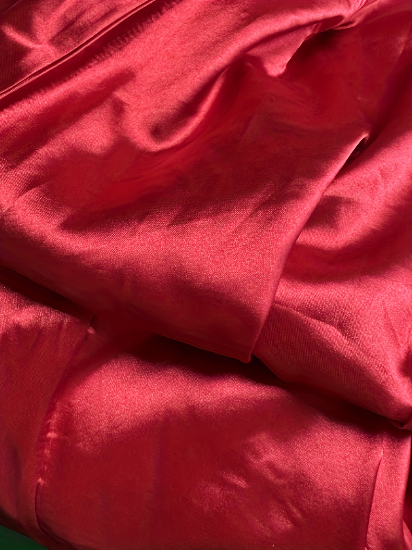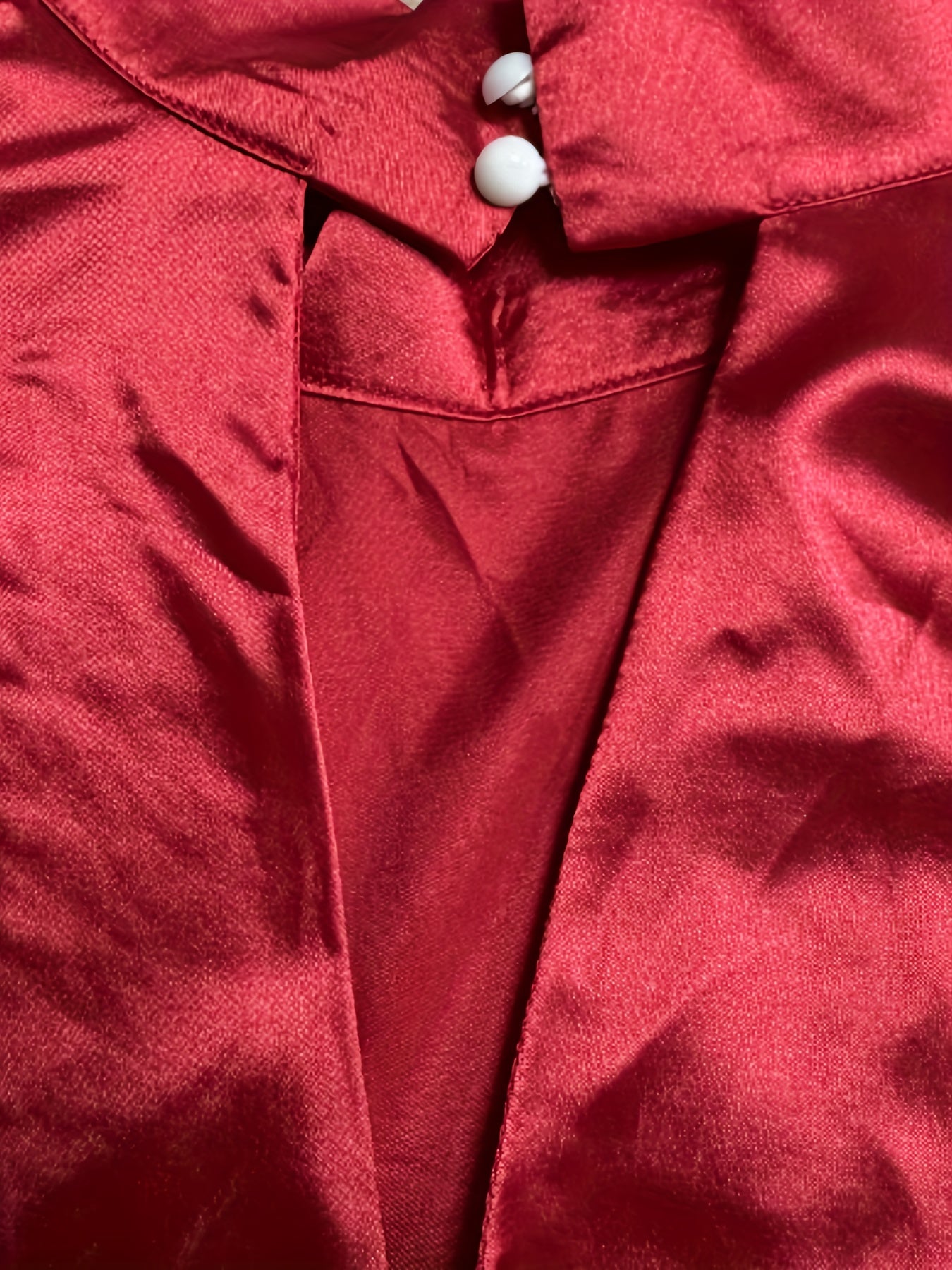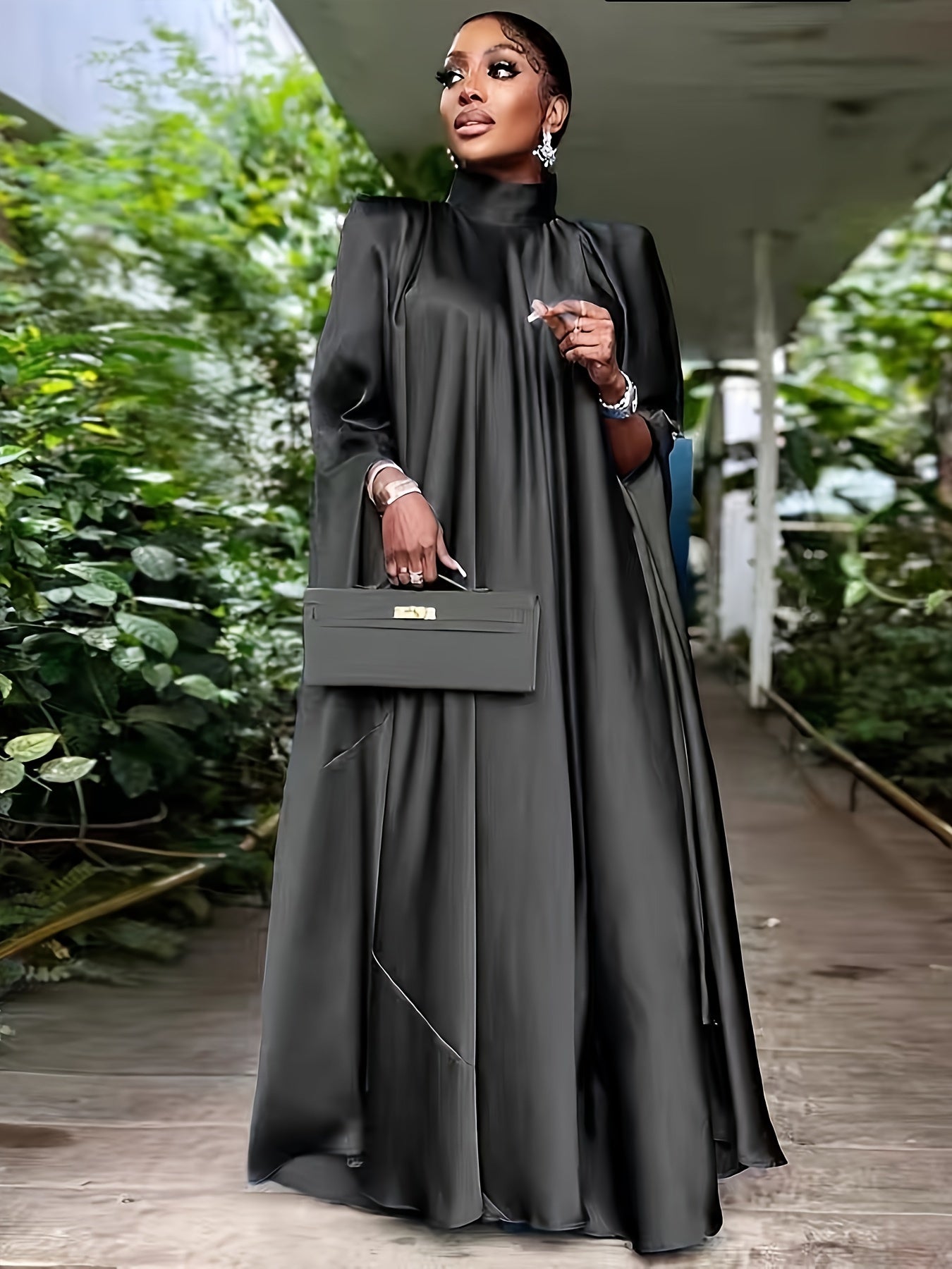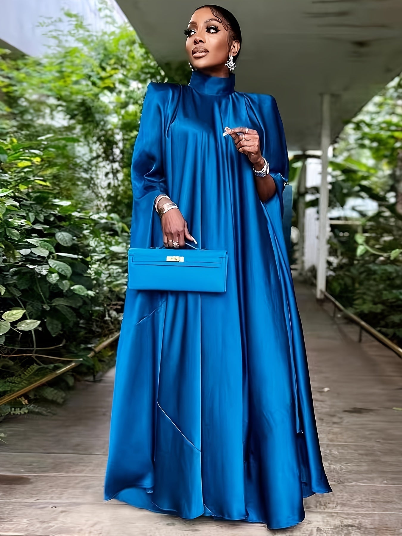 2. Luxurious satin fabric with a mock neck and bat sleeves