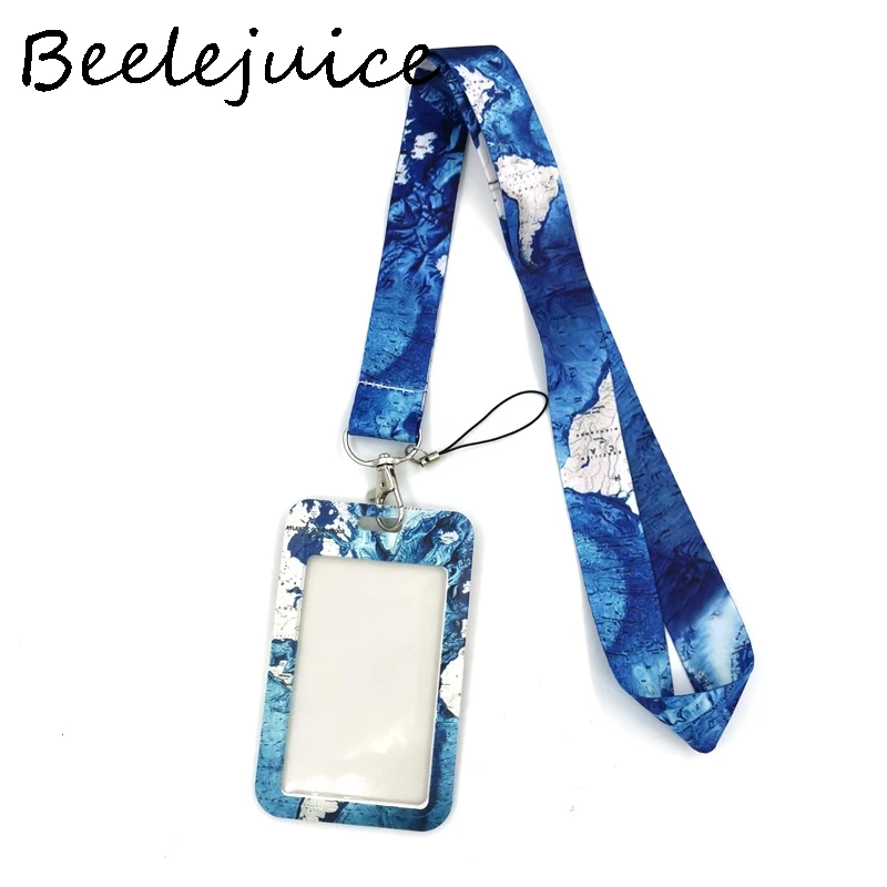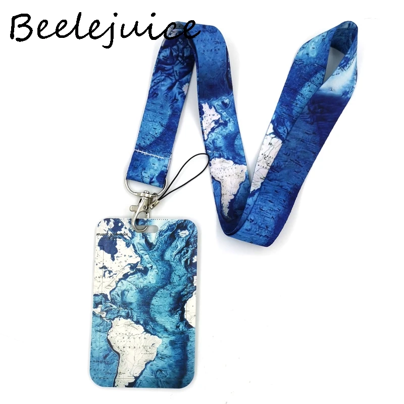 World Map Lanyard Card Holder with Neck Strap